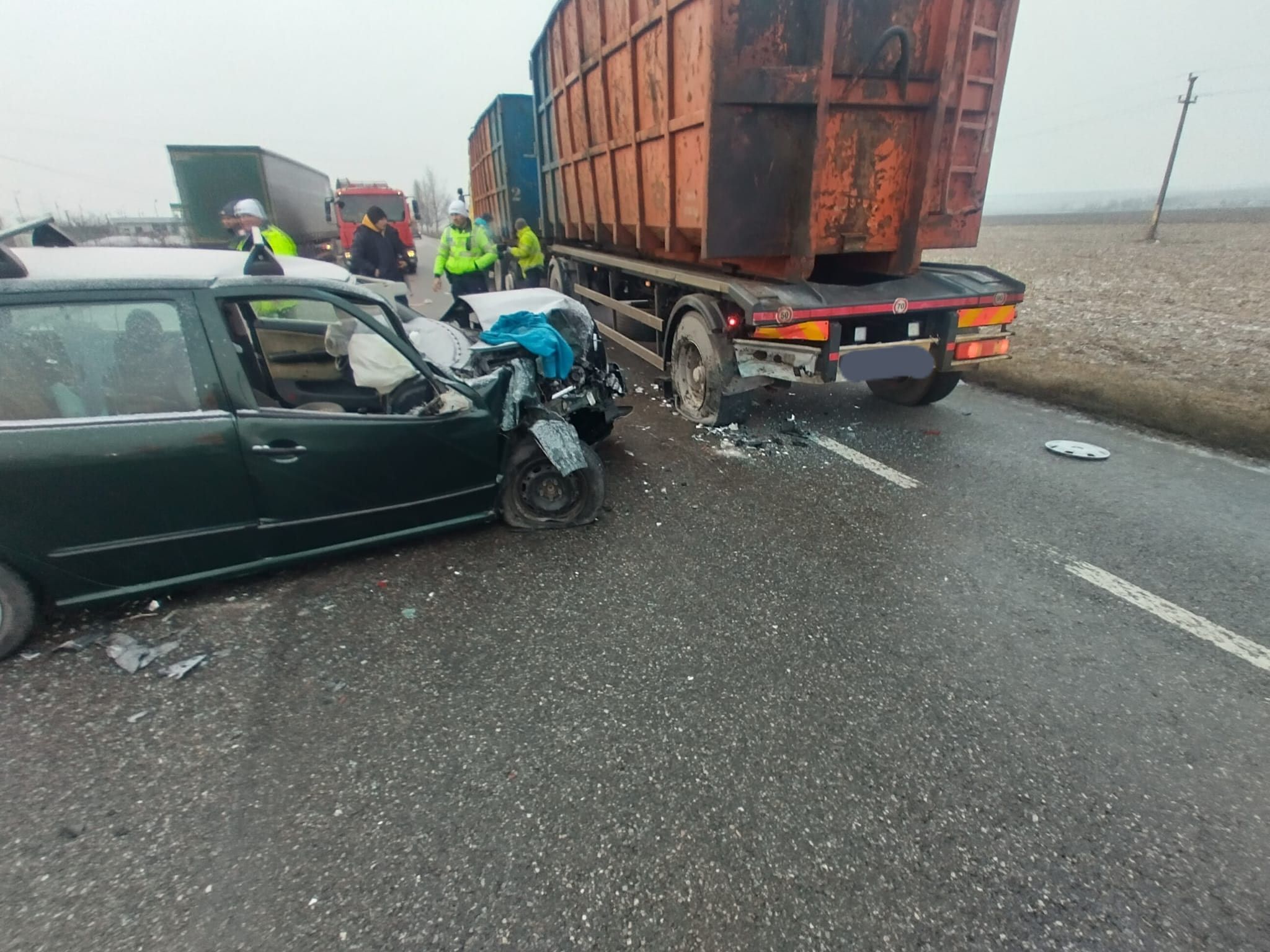 Un autoturism a intrat în coliziune cu vehiculul greu din spate. Ca urmare a incidentului, o persoană a suferit răni ușoare. Cu toate acestea, aceasta a refuzat transportul la spital, decizând să rămână la fața locului.