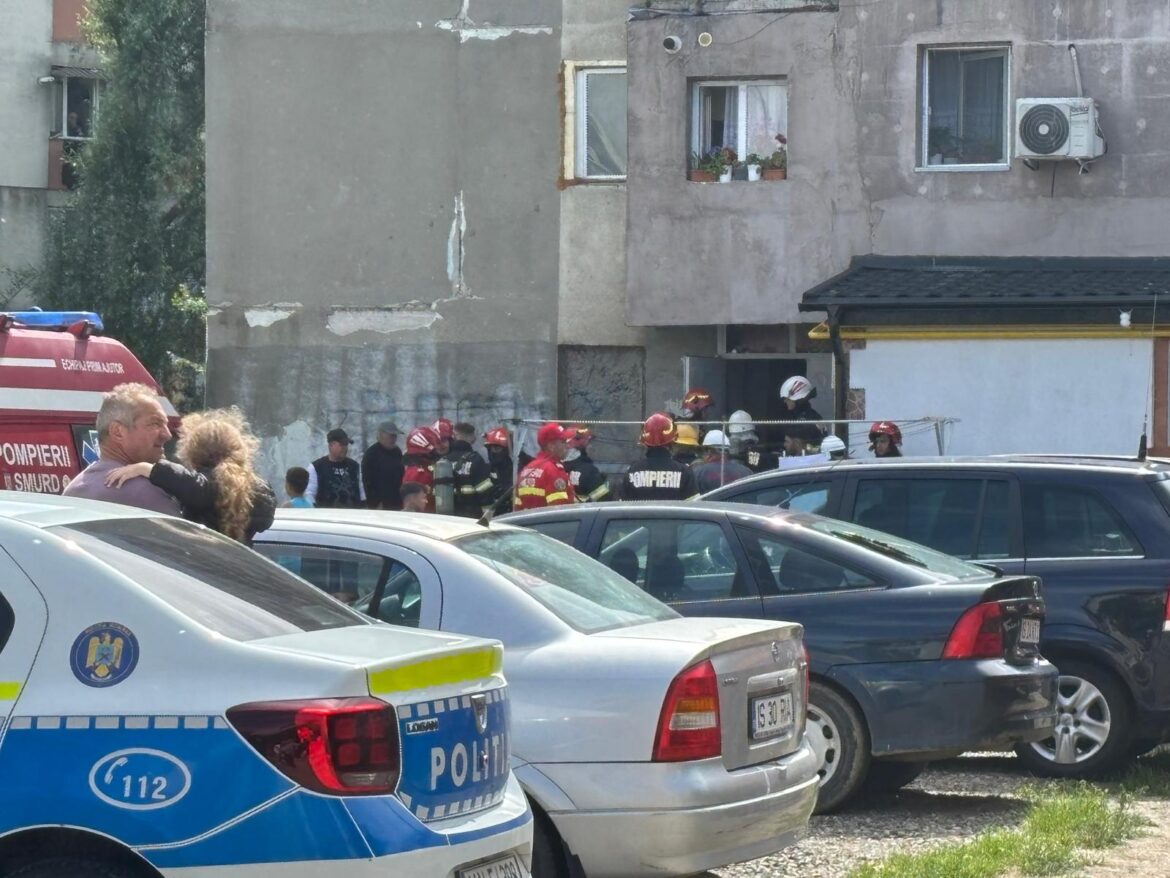 Intervenția pompierilor la un bloc de locuințe