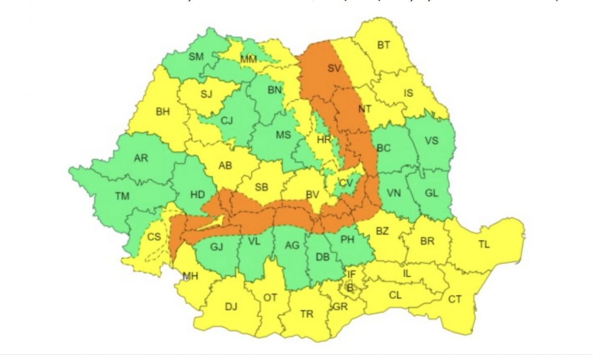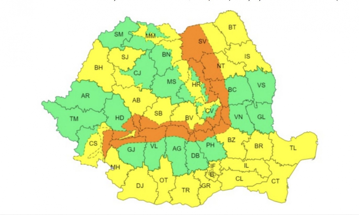 Pentru aceeași perioadă a fost emisă o avertizare Cod Portocaliu de viscol puternic.„În Carpații Orientali și Meridionali, la altitudini de peste 1600 m, vântul va sufla tare cu rafale de 90…120 km/h, viscolind puternic zăpada depusă în zilele precedente și determinând scăderea vizibilității”, potrivit ANM.