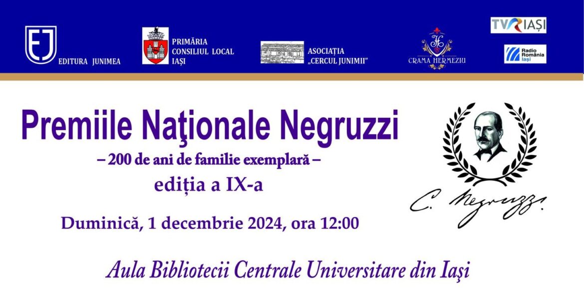 Festivitatea de premiere va avea loc în Aula Bibliotecii Centrale Universitare „Mihai Eminescu”, duminică, 1 decembrie 2024, ora 12:00. Premiile vor fi înmânate de Primarul Iașului, Mihai Chirica.