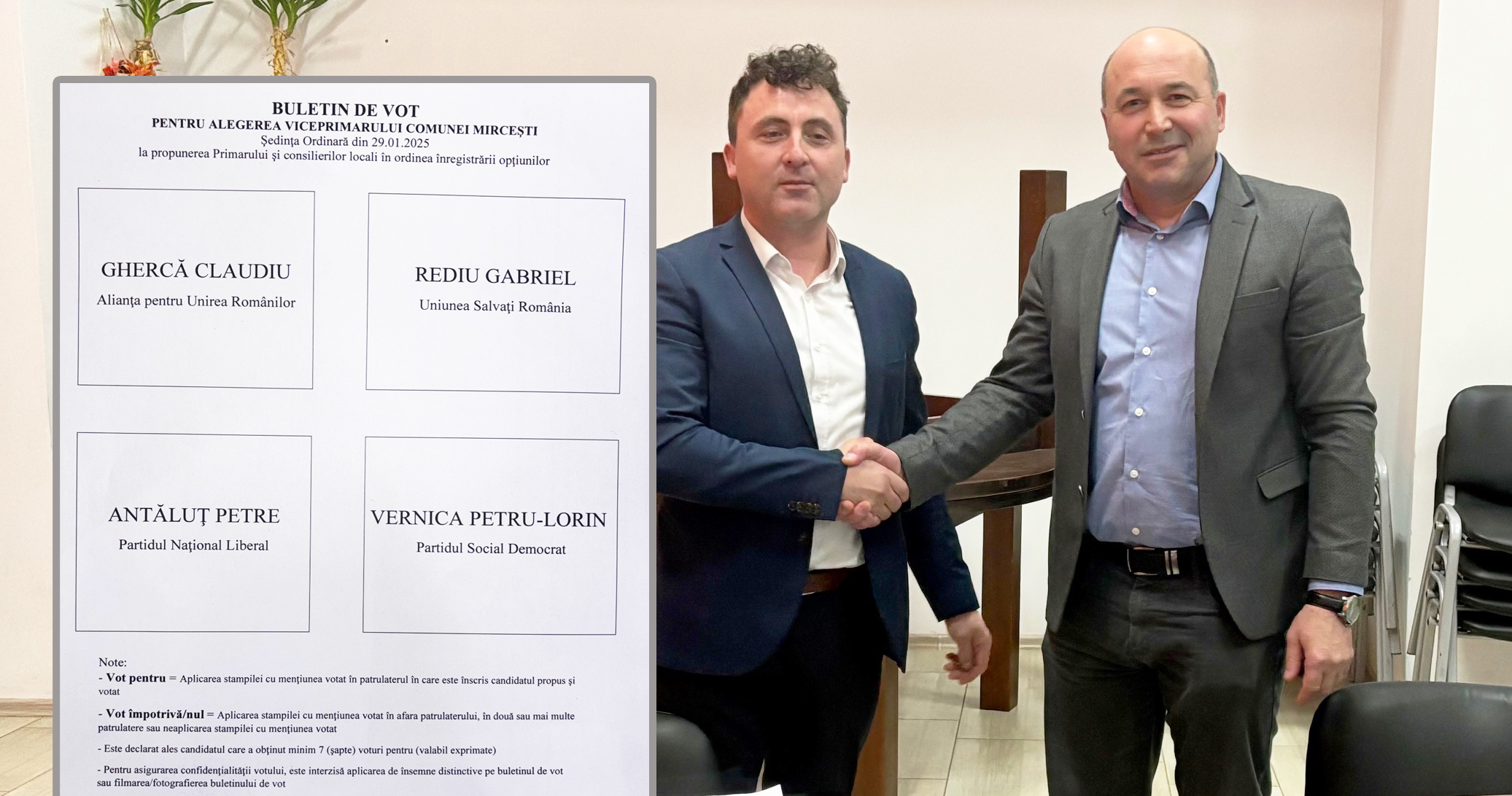 Primarul Leon Bălteanu a îmbrățișat alegerea lui Rediu Gabriel, manifestându-și astfel dorința de colaborare constructivă. Acest gest simbolic este menit să sublinieze angajamentul ambelor părți de a lucra împreună pentru bunăstarea comunității din Mircești.