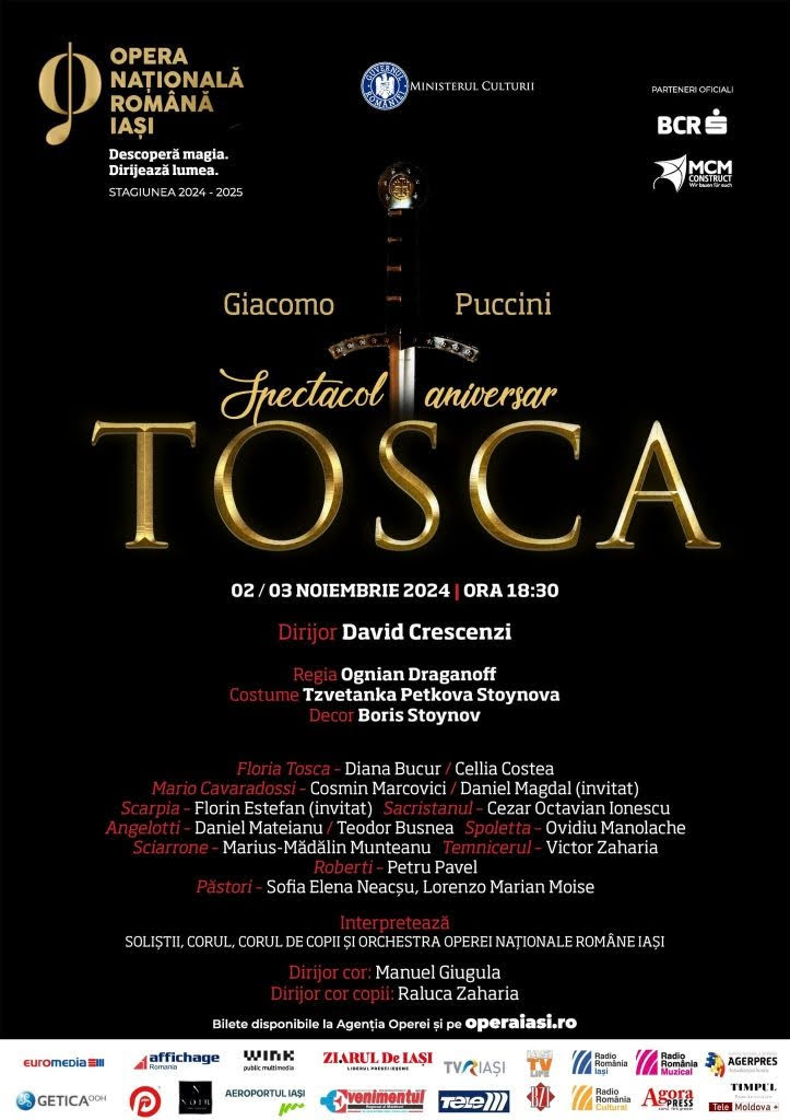 Opera Națională Română din Iași va marca pe 3 noiembrie 68 de ani de la debutul primului spectacol pe scena teatrului liric ieșean. Această aniversare simbolică va fi sărbătorită prin prezentarea operei „Tosca”, de Giacomo Puccini, care a fost și prima producție a Operei Iași. Este o ocazie specială care reînvie amintiri și aduce în atenție tradiția artistică remarcabilă a instituției.