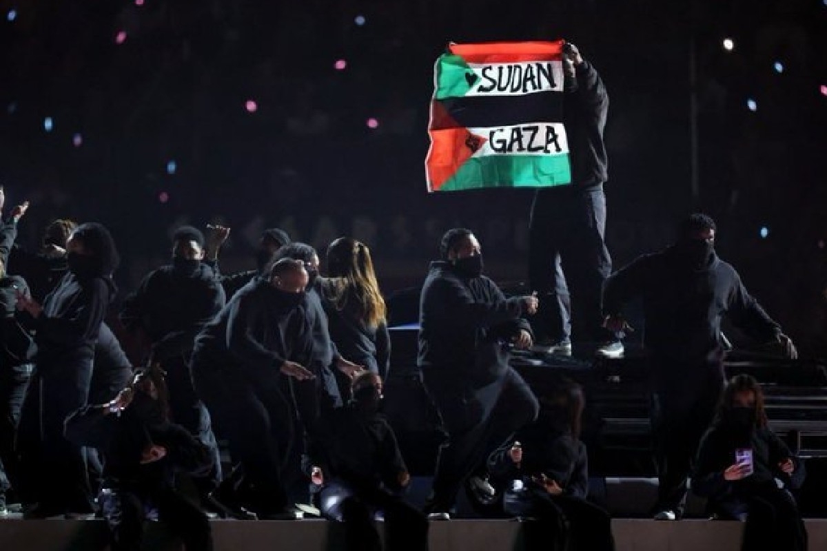 Un participant la show-ul lui Kendrick Lamar, desfășurat în pauza Super Bowl, a profitat de ocazie pentru a atrage atenția globală asupra unor probleme internaționale. În timpul interpretării melodiei „tv off”, bărbatul s-a urcat pe o mașină și a afișat un steag palestinian pe care erau inscriptionate cuvintele „Sudan” și „Gaza”.