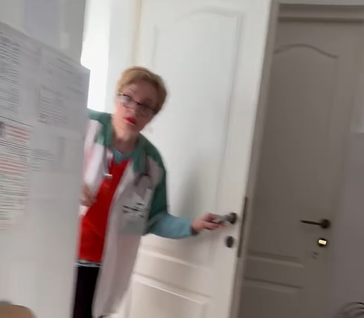 „Nu dau nicio fişă! Afară de la mine din cabinet!” spune medicul, intrând în cabinet apoi iese şi îi cere femeii să plece de la uşa sa.„Aşa tratează pacienţii când vin la consult. (…) Va rog să distribuiţi poate cineva competent ia măsuri .. Câmpeanu Carmen. Dispensar din com Frânceşti”, este mesajul postat pe Facebook de femeia care a realizat înregistrarea.